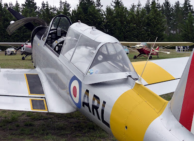 Below is a view of NZ528 outside the Wellington Aero Club in camouflage markings.