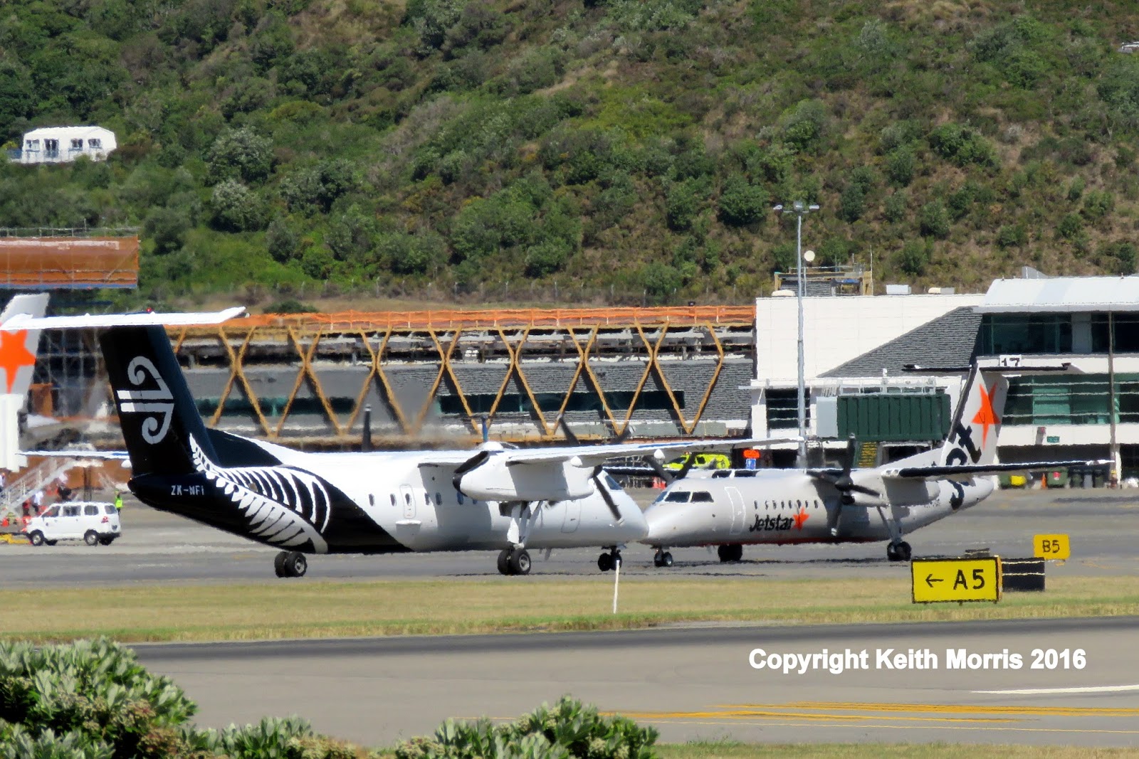 The neat thing about Wellington Airport is that you can get so many great spots to take photos of the aircraft. After Coutts Street I went down to the Spruce Goose cafe for a coffee on their outside deck. From there the backgrounds are busier but you get great views with a Northerly wind.